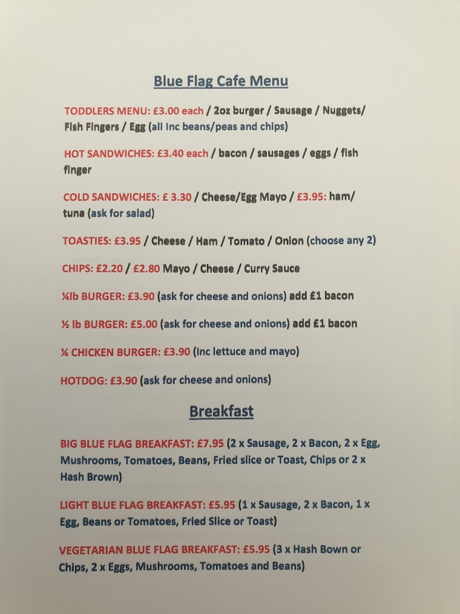 Blue Flag Cafe Menu